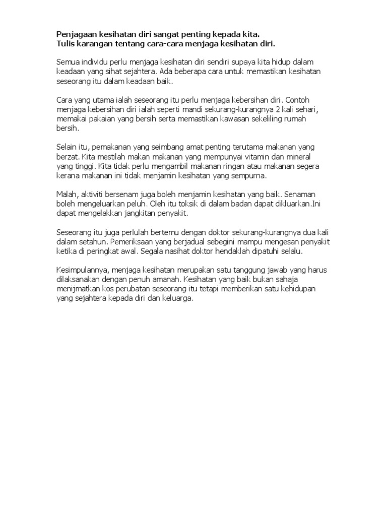 Karangan Cara Cara Menjaga Kesihatan Diri Pdf